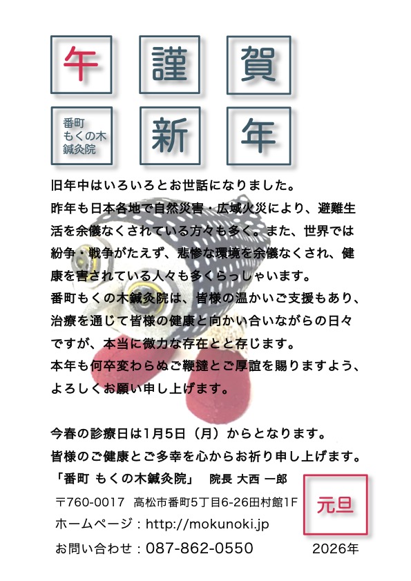 ・2016年1月「番町もくの木鍼灸院」開設。